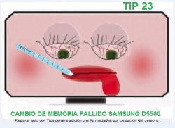 HACE UNOS 4 AÑOS QUE ESTAMOS CON ESTE TEMA Y NO SE TERMINA. SIEMPRE HAY ALGO MAS PARA AGREGAR Y SEGÚN VAN LAS COSAS NO SE VA A TERMINAR, HASTA QUE SE PRODUZCA UN CAMBIO TECNOLÓGICO TOTAL Y LOS SAMSUNG D5500 SEAN ABANDONADAS POR LOS USUARIOS, CANSADOS DE CAMBIARLES LAS MEMORIAS ALREDEDOR DE UNA VEZ POR AÑO. LOS REPARADORES ESTAN DIVIDIDOS ENTRE LOS QUE ESTÁN CONTENTOS PORQUE CONOCEN EL TEMA Y SUS MEMORIAS SUPERAN HOLGADAMENTE ESE TIEMPO DE FUNCIONAMIENTO Y LOS QUE NO LO CONOCEN Y SUFREN LAS QUEJAS DE SUS CLIENTES. POR ESTAS RAZONES Y PORQUE ES UN TEMA QUE INTERESA A TODOS, SIMPLEMENTE POR SUS DESEOS DE CONOCER UN COMPONENTE EXTRAÑO, LO VUELVO A TRATAR HOY.