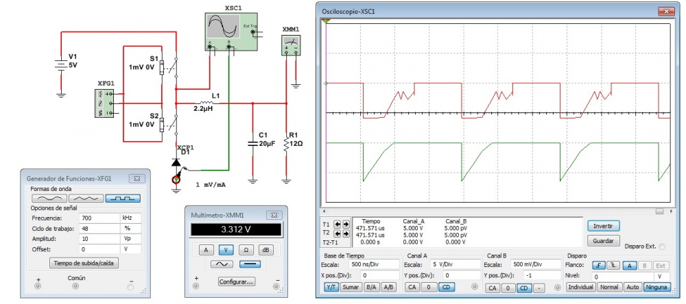 Fig.10.3.3 Simulación para observar los oscilogramas de salida