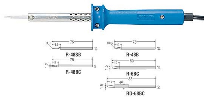 Pero en general los soldadores baratos tienen punta de bronce por economía. Entonces el reparador compra una punta de cobre para SMD que tienen una cobertura cerámica para mejorar el rendimiento térmico. Ver la figura 1.2.2.