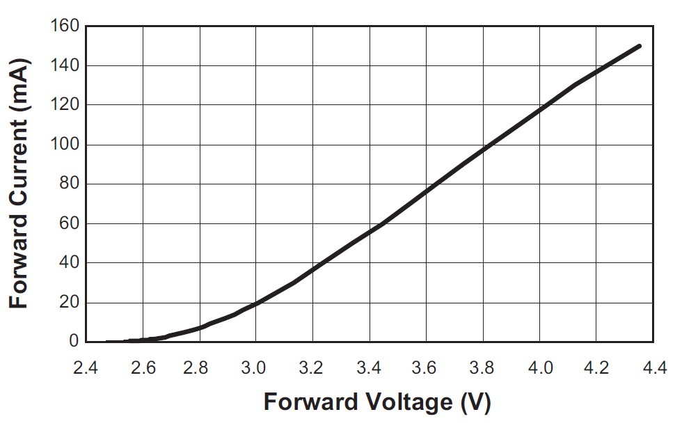 En realidad la corriente de trabajo de este SLED es del orden de los 20 mA por lo que podemos decir que tienen la misma caída de tensión que un LED común solo que admiten más corriente de trabajo. Por eso no es raro encontrar TVs con una corriente de trabajo de 70 mA que requieren una mayor tensión de fuente de cada cadena.