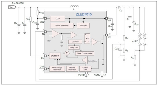El ZLED7015 es un circuito integrado clásico para excitación 0D que ya a sido superado por otros más eficaces para 1D, pero didácticamente es conveniente estudiarlo primero para que sea más simple entender los circuitos más modernos y para reparar los relativamente viejos "TV LED" y los viejos y modernos monitores LCD.