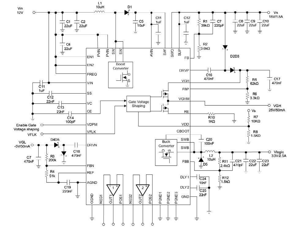 ¿Y cómo nos guiamos para repararlas si la información del manual termina en el conector de salida de la main? La sección de fuentes por lo general tiene integrados de los cuales se consigue el data sheet y sus circuitos de aplicación nos son sumamente útiles porque son integrados dedicados a una función, alimentar la pantalla, y como todas las pantallas tienen tensiones y funcionamiento similares si tenemos un circuito, prácticamente los tenemos a todos.