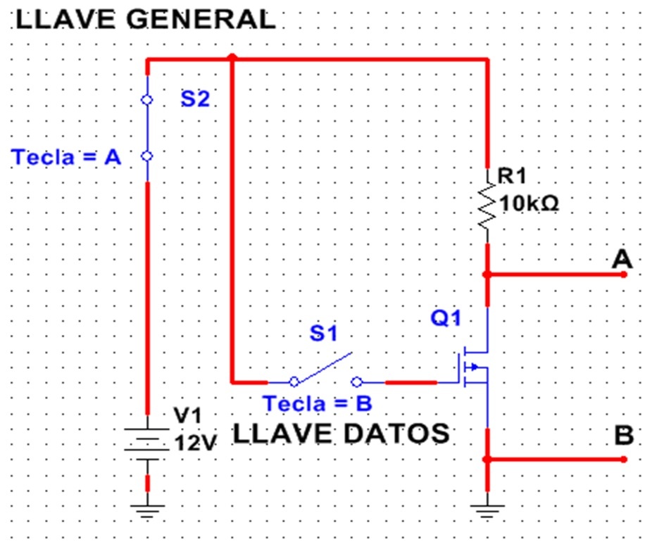 Cuando el gate tiene aplicado un cero, abriendo la llave se produce un estado alto en el drenaje y la celda de memoria guarda un "1". Cuando se desconecta la fuente son todos ceros pero lo importante es que al reconectarla, todas las salidas vuelven al estado original.