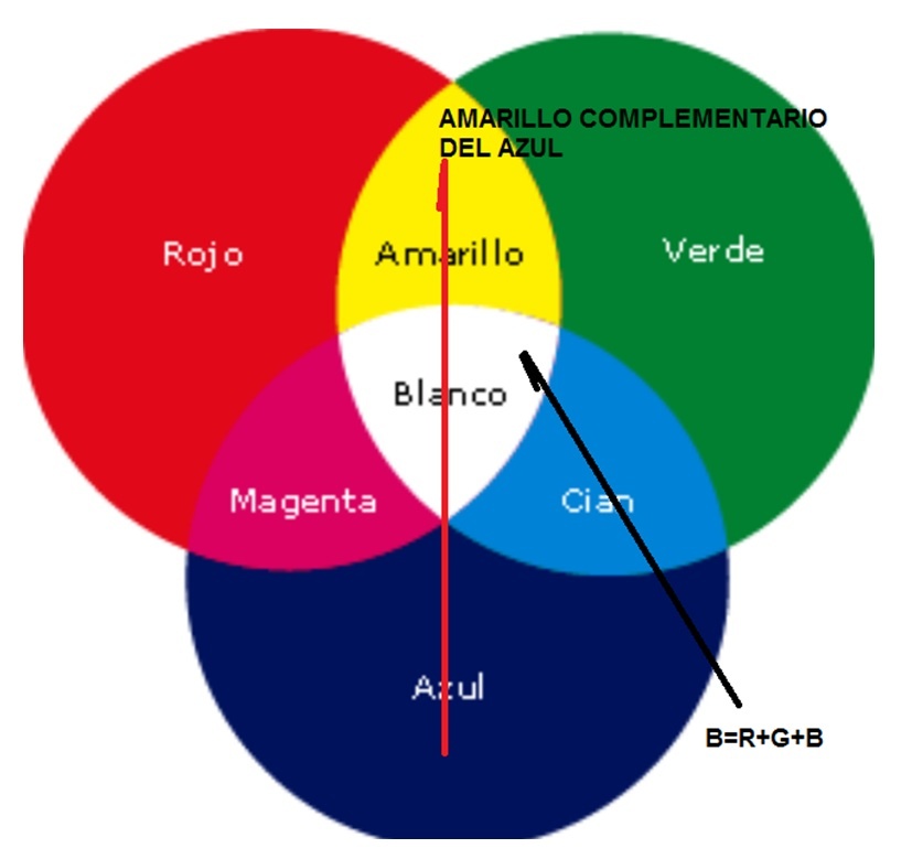 PARTE 3 En la parte 2 de esta serie dejamos por explicar porque los SLED tenían un filtro amarillo y que en realidad emitían luz azul. Esto no es un problema teórico de física. Es algo que el reparador debe tener presente si quiere realizar un buen trabajo y no tener reclamos en garantía. La energía de la luz, depende de su frecuencia y el azul está prácticamente en el extremo superior de energía, solo superado por el violeta. Pero nosotros debemos generar luz blanca, que se logra combinando luz azul, roja y verde en una síntesis aditiva. Pero solo tenemos un color de la síntesis aditivas, que es el azul. Entonces colocamos un filtro amarillo sobre la luz azul. Este filtro deja pasar algo de luz azul y convierte la mayoría de luz azul en rojo y en verde. La proporción está muy bien lograda de modo que saliendo del SLED azul con su filtro tenemos luz blanca. La síntesis aditiva se representa en el llamado circulo de colores aditivos, que podemos observar en la figura 4.