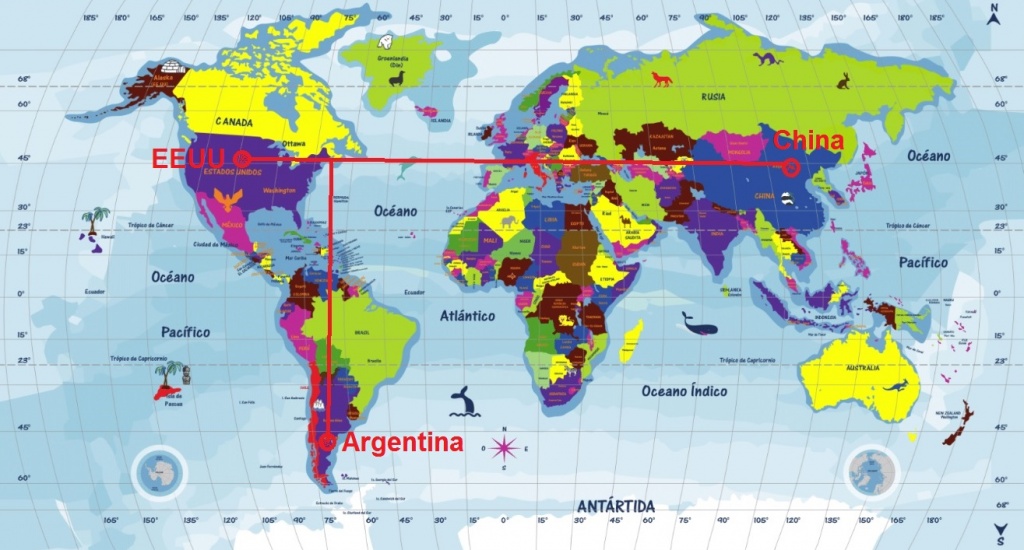 ![]() Fig.3 Planisferio con la situación geográfica de Argentina EEUU y China