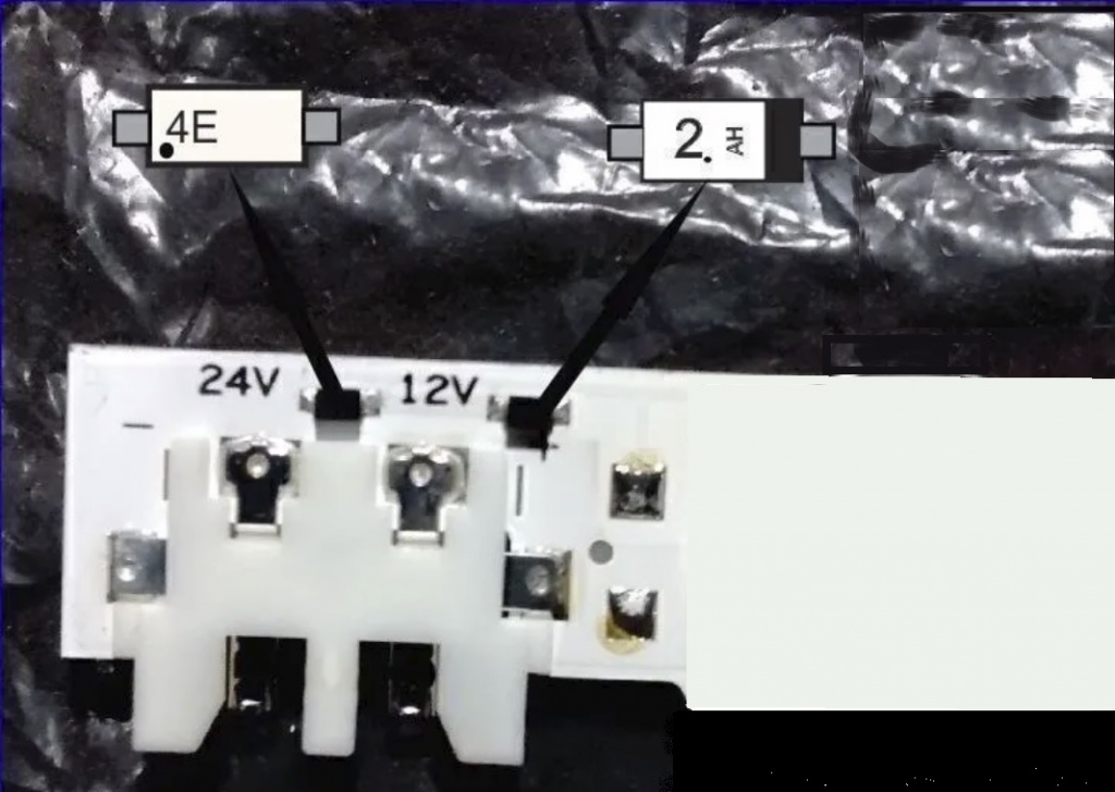 Además de este modo tienen algún sentido la serigrafía de la plaqueta que indica claramente 12 y 24 pero no son simples diodos zener, porque estos tienen capacidades parasitas muy grandes y no protegen absolutamente nada. Esto también nos explica porque el componente 4E indica circuito abierto cuando se lo mide con el tester.