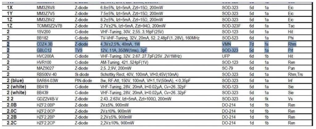 El CDZ4.3B es un diodo zener de alta velocidad de 4.3V como lo confirma la especificación extendida bajada de Internet. El GBLC12 es un circuito integrado que contiene 3 o 4 componentes según lo indicado en la figura 4.