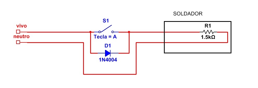 Por lo general esta solución permite mantener el soldador a una temperatura cercana a la ideal cuando no se usa por mucho tiempo sin que se dañe la punta (media potencia). Cuando se requiere su uso se cierra la llave S1 y el soldador comienza a trabajar a potencia plena permitiendo una buena soldadura. cuando termina de soldar no se olvide volver a pulsar la llave.