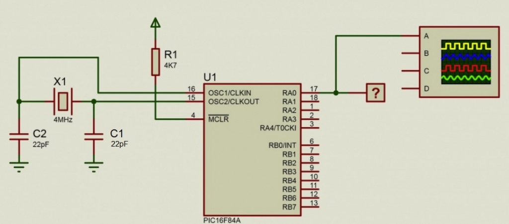 ¿Esta serie de artículos ya está terminada? No, hasta ahora tenemos un PIC16F84A virgen. Si lo ponemos en el circuito, el osciloscopio no tendrá salida alguna.