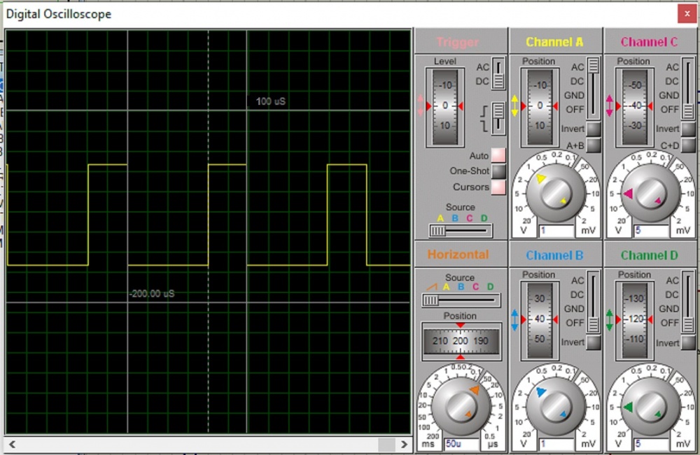 Es decir que queremos un generador que entregue 5V durante 100 uS luego permanezca en cero durante 200 uS y vuelva a comenzar un ciclo idéntico hasta el infinito.