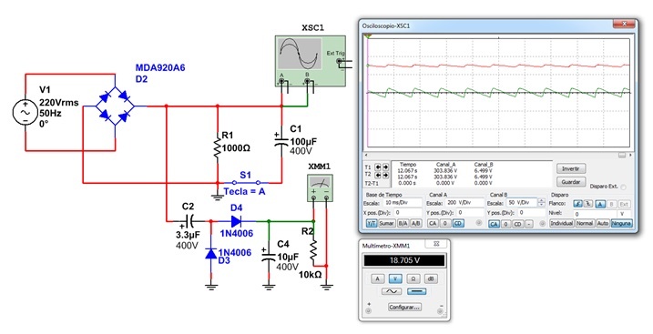 Y debajo de S1 dibujamos un circuito que reemplaza al uso del osciloscopio en este caso particular. Es un medidor del ripple que se agrega al tester. Los que utilizan mi sonda de RF seguramente lo abran reconocido y ya saben cómo funciona y los que no; pueden encontrarlo en la solapa Taller -->Sonda de RF de www.picerno.com.ar.