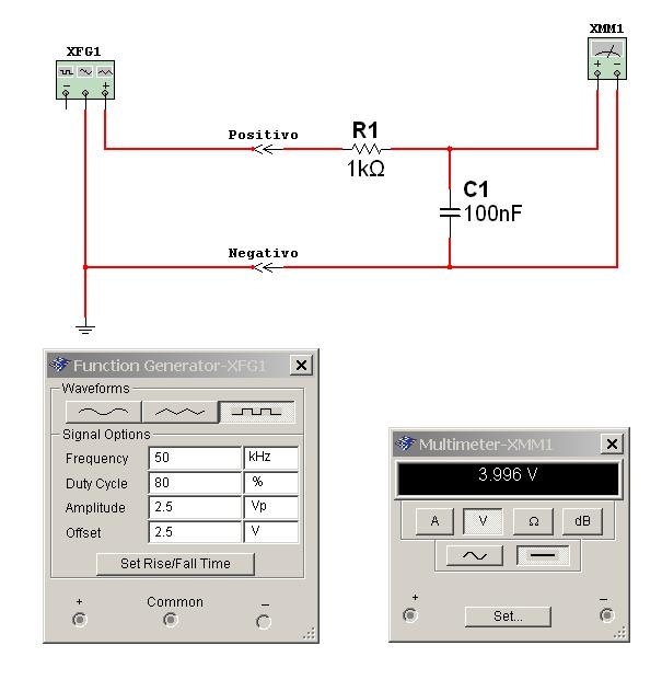Por ejemplo, en nuestro caso, aplicando una señal rectangular de 50 KHz con 5 V de amplitud sobre cero y con un periodo de actividad del 80%, el tester indica prácticamente 4V. Pero lo interesante es que si aplicamos una señal analógica de continua de 4V también va a indicar lo mismo.