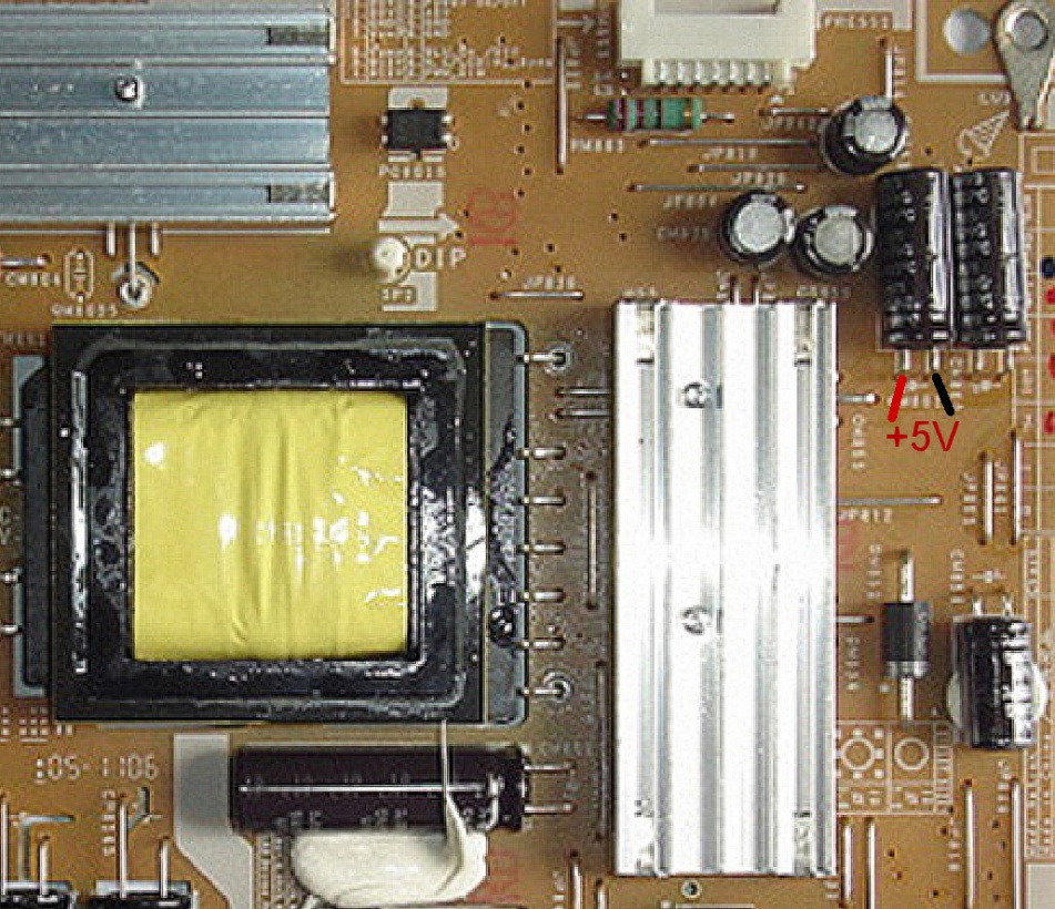 La solución consiste en colocar un resistor limitador de unos 5 Ohms en serie con la red con lo cual el pulso de arranque ya tiene valores aceptables. Luego, durante el uso normal, este resistor no cumple ninguna función pero como circula corriente por el se calienta y eso significa una generación superflua de calor, en el interior del TV y un consumo innecesario de energía.