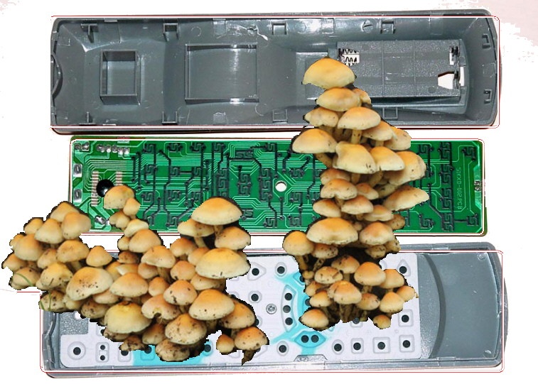 Hable con mi amigo, porque quería saber que habían indicado las pruebas y me dijo que no parecía ser una especie de hongo conocida y que sus residuos eran agua casi pura, que con un proceso de filtración mecánica podía inclusive ser consumida por el ser humano. Que ya había hecho un informe a la facultad de bioquímica, para que lo estudien y vean si puede hacerse algo útil con estos hongos. También me dijo que había hecho pruebas para ver si solo podía vivir sobre la goma siliconada y llegó a la conclusión de que podía vivir sobre muchos materiales aislantes, pero que no crecía sobre metales. Probó con madera y plástico y allí crecían a gusto a una temperatura de 20ºC. Por lo que me recomendó que desarmara por completo el control remoto y trate también el gabinete y la plaqueta, ya que una sola espora que quedara viva volvería a generar el problema.