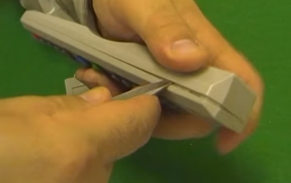 Para ver la construcción interna hay que sacarle la tapa. Saque las pilas y abajo encontrará un tornillo. Luego hay que separar las dos mitades del gabinete que están colocadas a presión, con una serie de lengí¼etas de traba. Por lo general los novatos recurren a un destornillador de relojero para introducirlo entre las dos mitades, pero este es el modo más seguro de marcar el gabinete. Ver la figura 1.2.1.