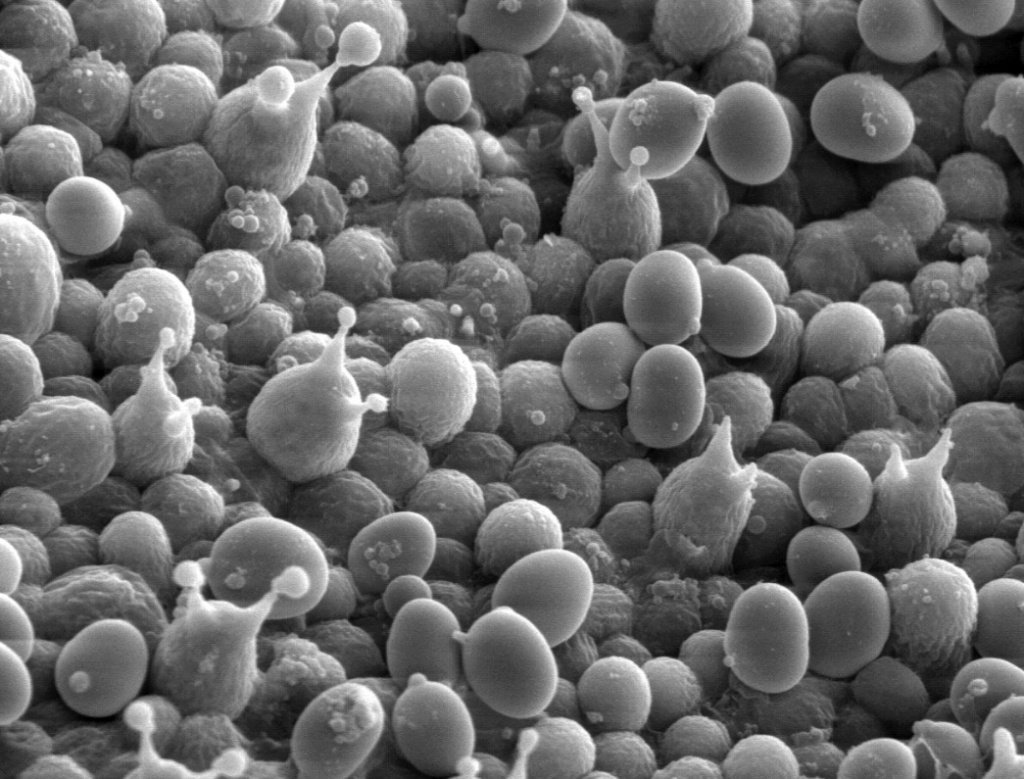 Desarme la plantilla de goma y del lado de adentro estaba realmente mojada. La inspeccione con mi microscopio en 60 aumentos y me pareció notar una conjunto muy aglomerado de puntos blancos. Limpie esa zona con alcohol isopropílico y los puntos desaparecieron. Allí me di cuenta que eso ya no era trabajo para un ingeniero. Como tengo un amigo que es bioquímico lo fui a ver con la plantilla de goma. Escuchó mi relato y luego colocó la plantilla en su microscopio y se quedo sorprendido. Son hongos, me dijo, probablemente generados en las manos de los usuarios y seguramente son resistentes a los líquidos jabonosos. Por lo que veo tienen un producto de desecho que parece ser agua con otros restos que tendría que analizar para reconocer.