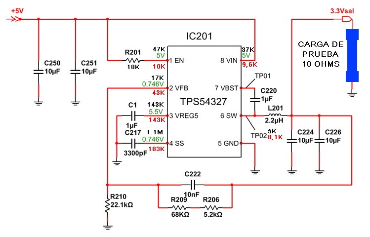 Esta es una carga media por la que circula solo una corriente de 330 mA pero suficiente para realizar la prueba de fuente.