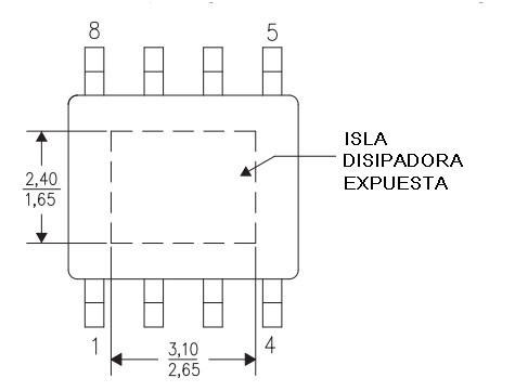 Como vemos el CI posee una isla desipadora central oculta que está soldada al circuito impreso; así que es habitual que el reparador tenga dificultades en retirar el circuito integrado si no sabe de esta isla. Y a veces sabiéndolo suele tener dificultades si no aplica el método adecuado de precalentamiento de la plaqueta.