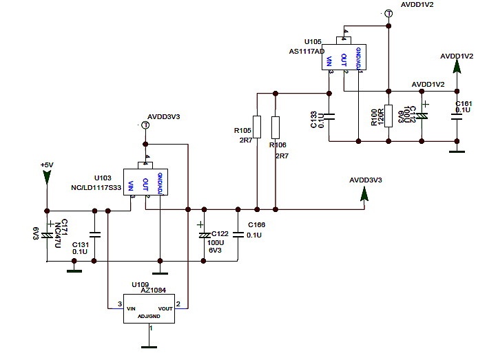 Luego de varios intentos nos pareció que el culpable era el conversor continua a continua U105 de 3V a 1,25V; pero al medir las tensiones encontramos una tensión de salida de 1,2V. Como me pareció una diferencia muy pequeña para que se produzca una falla total, procedí a medir las tensiones de entrada y salida en las condiciones de buen y mal funcionamiento y cuando funcionaba tenía 3V de entrada y 2,5V de salida en cambio cuando no funcionaba tenia 3V y 2,2V. Y como vi que era un regulador que se podía reemplazar fácilmente lo cambié y se resolvió el problema.