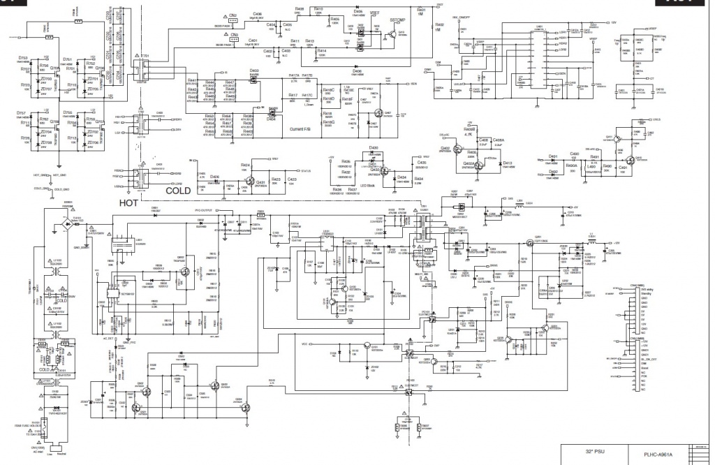 REPARACIÓN: dada la falla total de la fuente, lo primero es verificar si hay tensión sobre el banco de capacitores del preacondicionador (C607 y C611) que en condición de apagado del TV debe estar en unos 290V para redes de 220V y en 150V para redes de 110V ya que el preacondiciondador no debe funcionar. Ver la figura 1.